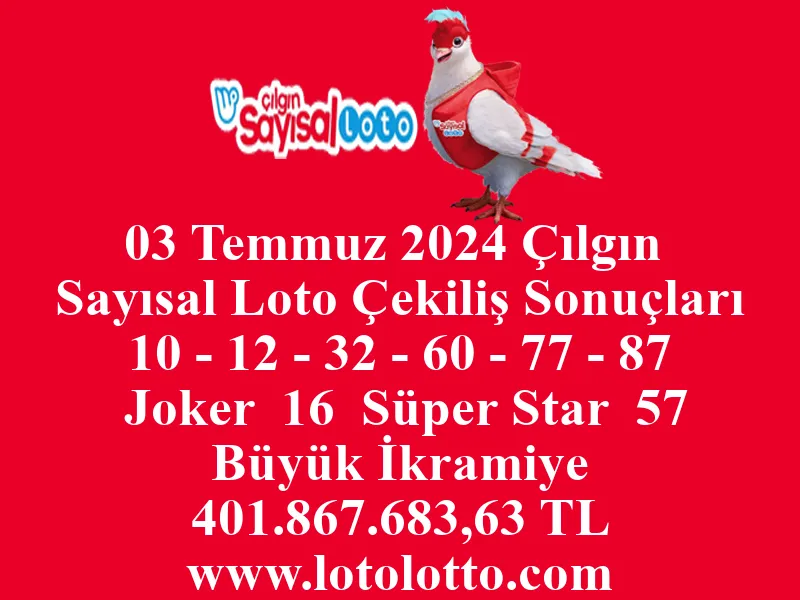 02 Temmuz 2025 Çılgın Sayısal Loto Çekiliş Sonuçları